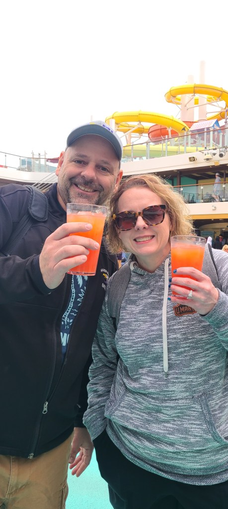 We didn’t think of it until it was too late but we should have had a picture of them and their adult beverage with Disney Fantasy behind them, the first ship they went on when they were 15.