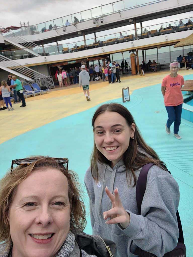 Heather and Ella had to take this picture. We were off to a good start when it came to people watching and this cruise definitely did not disappoint the rest of the way. As we were waiting to catch the elevator up to Lido on the 10th floor (to which we eventually decided to take the stairs because the elevators were so slow and backed up) there was a certain person waiting and one of the doors opened to which the person yelled, “Cindy! Cindy! The Elevator!” So this person became known as CINDY!