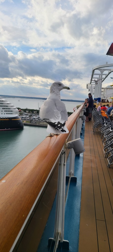 And while you can’t see if very well in the picture, for the first time ever on a cruise we saw dolphins.