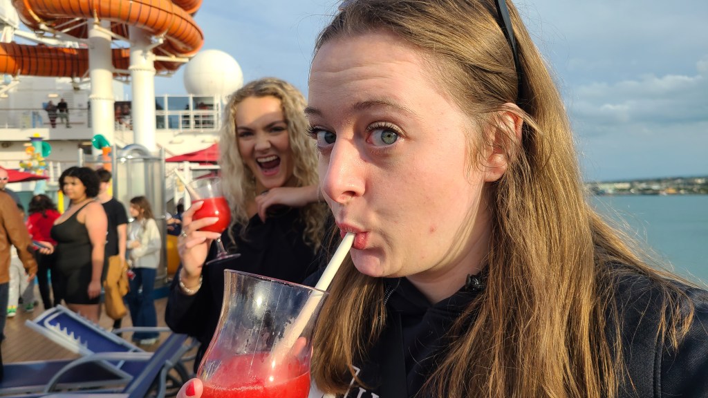 Kaitlyn buys her first cruise alcoholic drink now that she is 21.