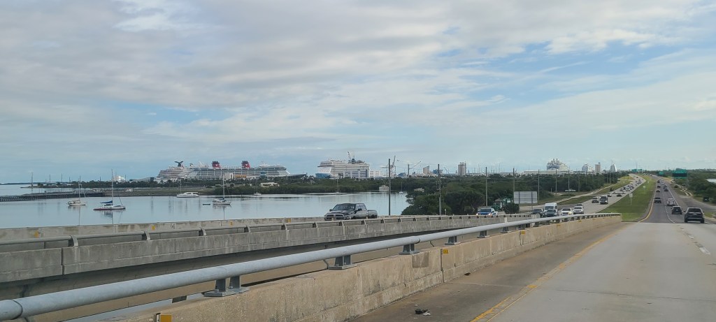 It was also interesting in a way to watch people come out of the terminal with long faces because their cruise had ended while we had big smiles because ours was just beginning. This was also about the time I saw people with 12 packs of pop and remembered I was going to ask our driver if we had time to make a quick stop for some pop but I obviously forgot. Carnival you can take 12 cans of pop per person with.