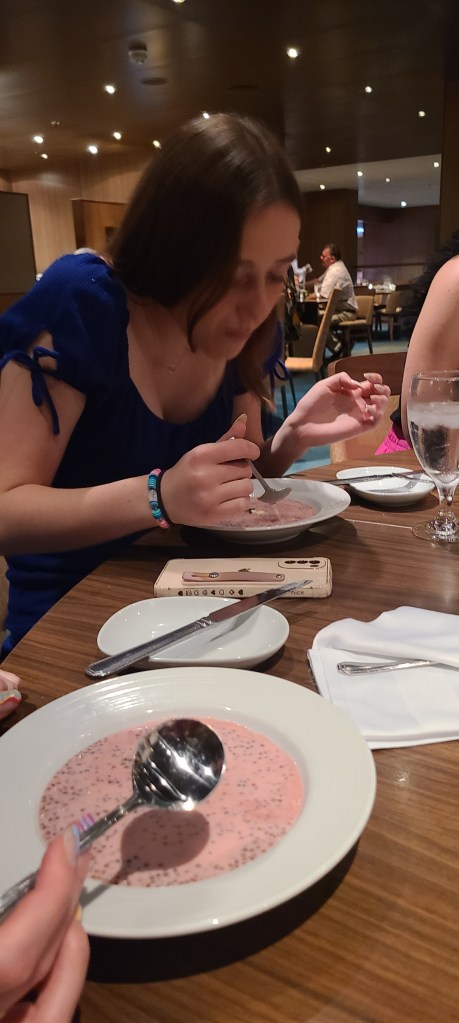 Sophie and Kate tried some interesting appetizer to which Sophie never finished. You can tell in the picture, she’s not too sure about it.