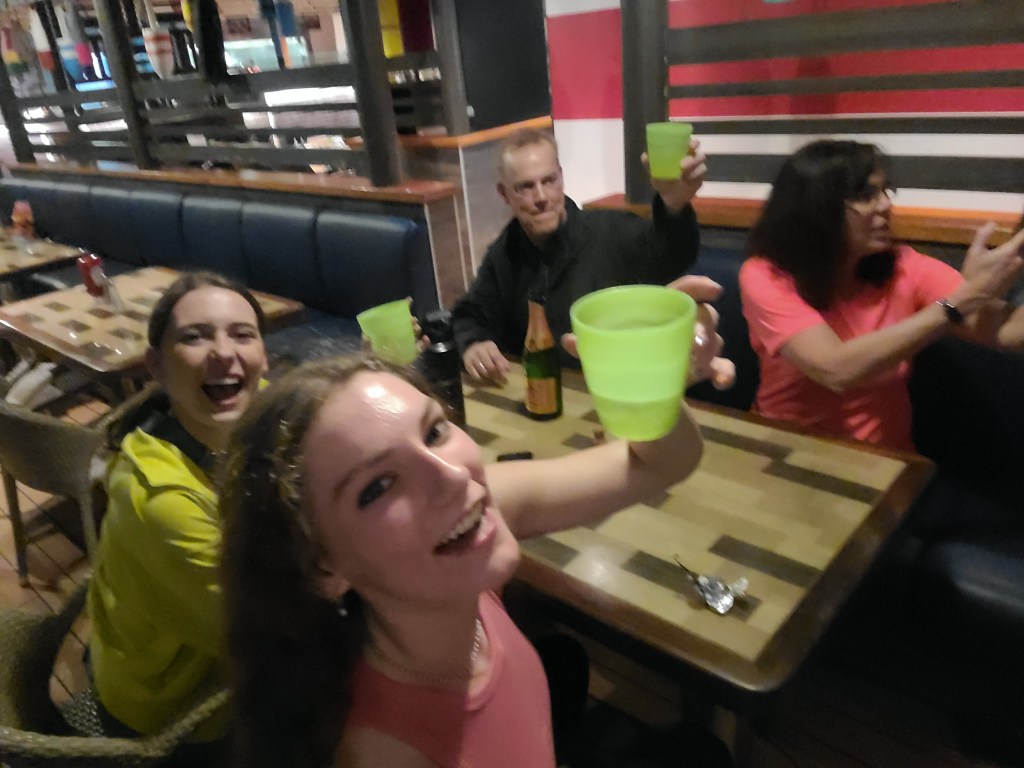 Today was also Kate’s 16th birthday. We took the non-alcoholic champagne Linda had won earlier and toasted Kate.